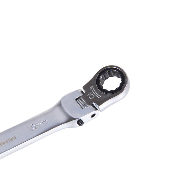 Трещотка с храповым механизмом на 72 зуба обеспечивает малый угол перестановки ключа - 5°. Трещоточная часть крепится к рукоятке гибким шарниром, оснащенным наклонным механизмом с фиксацией необходимого положения, что значительно облегчает монтаж резьбовых соединений в ограниченном пространстве. Профиль трещотки из 12 граней подходит к головкам болтов и гайкам как 6-, так и 12-гранного профиля. Накидную часть с шестигранным профилем позволяет работать с закисшим крепежом и полностью исключает "слизывание" граней крепежа. Матовая поверхность обеспечивает надежный хват и препятствует выскальзыванию инструмента из рук.
