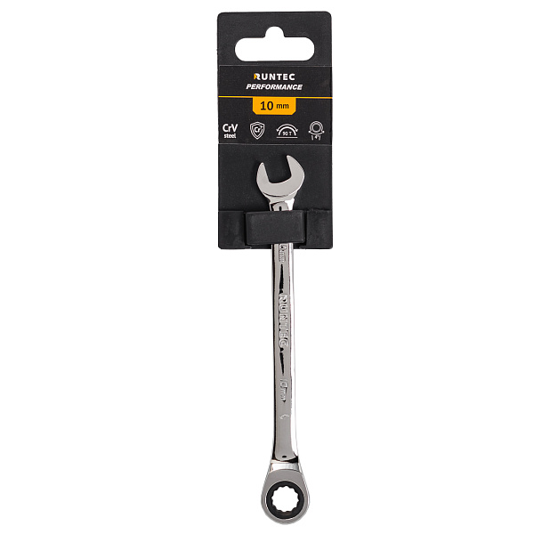 Ключ комбинированный трещоточный RUNTEC CrV, 90 зубцов, 10 мм
