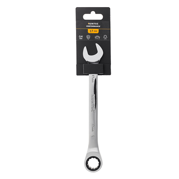 Ключ комбинированный трещоточный RUNTEC CrV, 90 зубцов, 17 мм