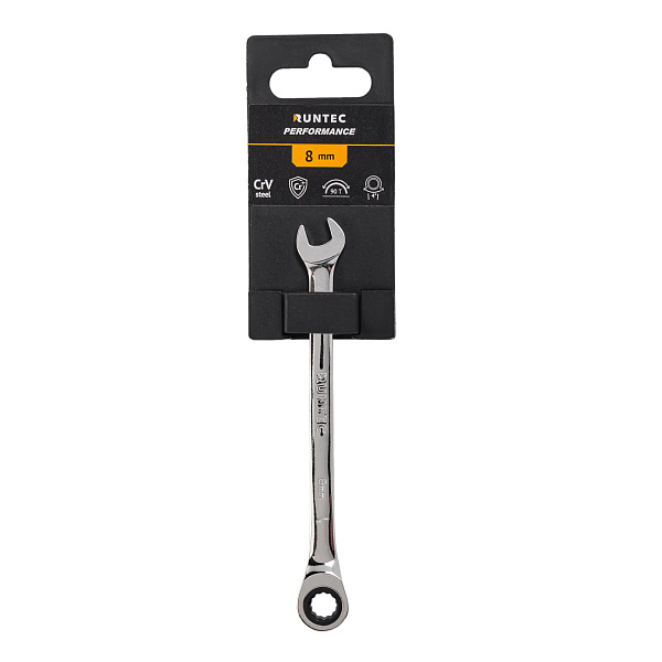 Ключ комбинированный трещоточный RUNTEC CrV, 90 зубцов, 8 мм