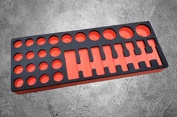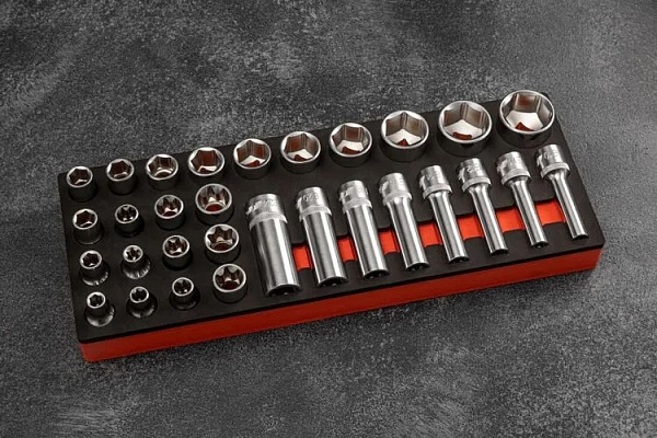 Ложемент EVA GARWIN PRO предназначен для удобного и организованного хранения набора торцевых головок и аксессуаров 1/2" (43 предмета).