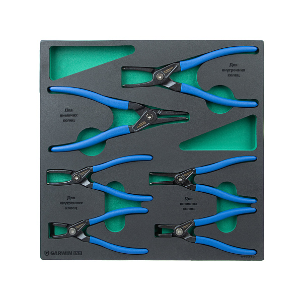 Набор съемников стопорных колец усиленных GARWIN IND 646048 из хром-ванадиевой стали и ручками из эргономичного нескользящего полимера. Наконечники - высокопрочная подшипниковая сталь. Съемники в комплекте работают как на сжим, так и на разжатие.