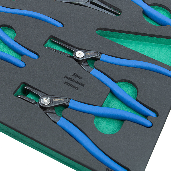 Набор съемников стопорных колец усиленных 180 и 230 мм, 6 пр. в ложементе EVA