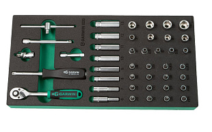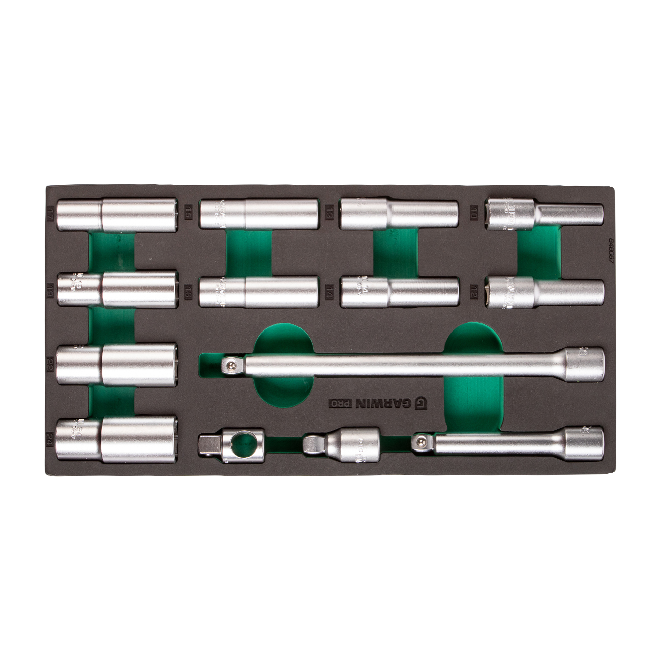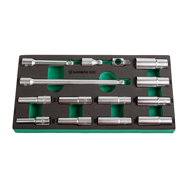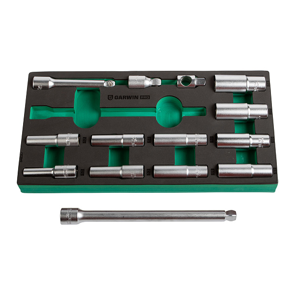 Набор торцевых головок GARWIN PRO 646067 из хром-ванадиевой стали предназначен для ручного монтажа/демонтажа резьбового крепежа. Комплект из 14 предметов поставляется в ложементе из EVA.