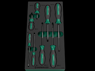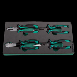 Ложемент выполнен из вспененного каучука (EVA), который отлично переносит воздействие ГСМ. Он не деформируется и сохраняет свою форму даже при механическом воздействии. Инструменты жестко зафиксированы и плотно лежат в своих гнездах, не болтаясь и не выпадая. Набор можно брать с собой на выездной ремонт или положить в багажник авто, где он займет минимум места.