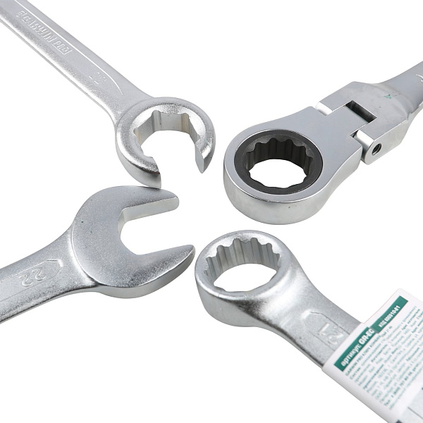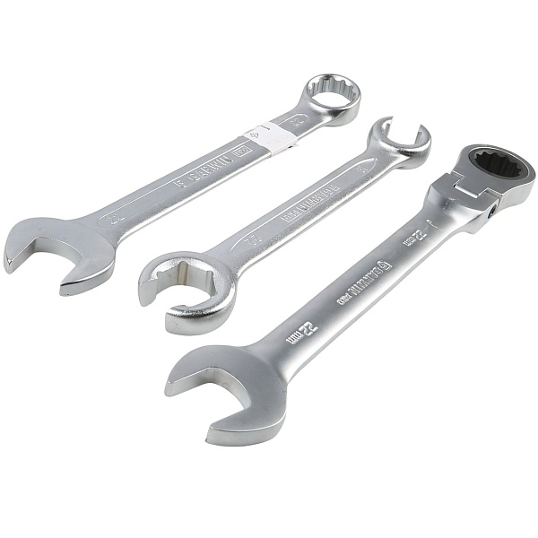 - 11 комбинированных трещоточных ключей с шарниром 8-24 мм;