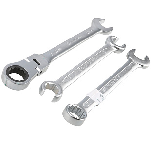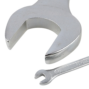 Материал ключей в наборе — закаленная хром-ванадиевая сталь. Сплав обеспечивает высокую прочность ключей, стойкость к изгибам и деформациям, возможность работать с большими нагрузками с усилием. Поверхность инструментов имеет хром-никелевое гальванопокрытие, защищающее от коррозии.
