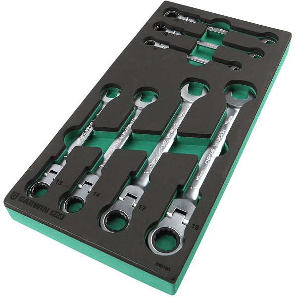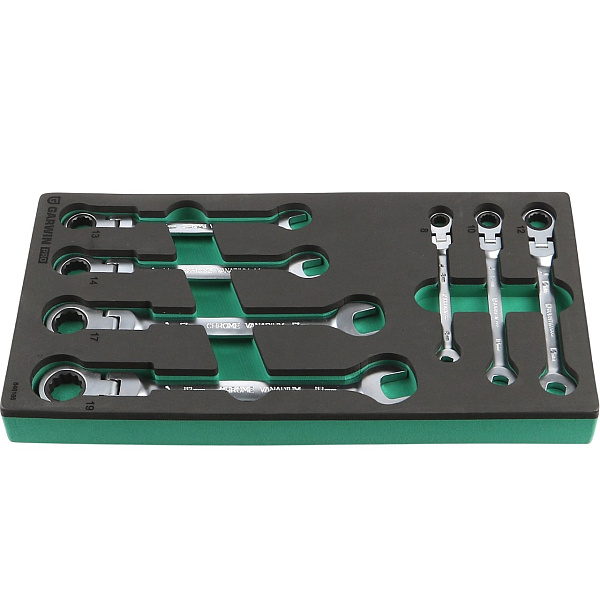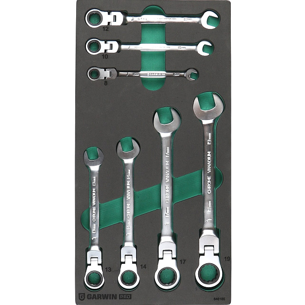Набор ключей комбинированных трещоточных с шарниром 7 пр. в ложементе EVA, GARWIN PRO, 646165