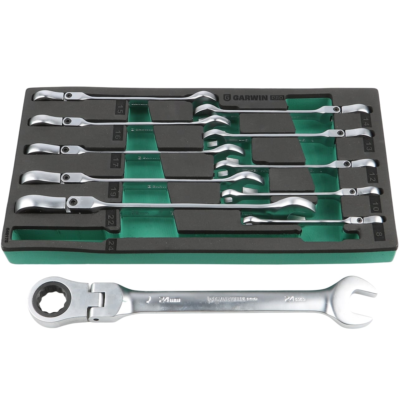 Набор ключей комбинированных трещоточных с шарниром 8-24 мм, 11 пр. в ложементе EVA