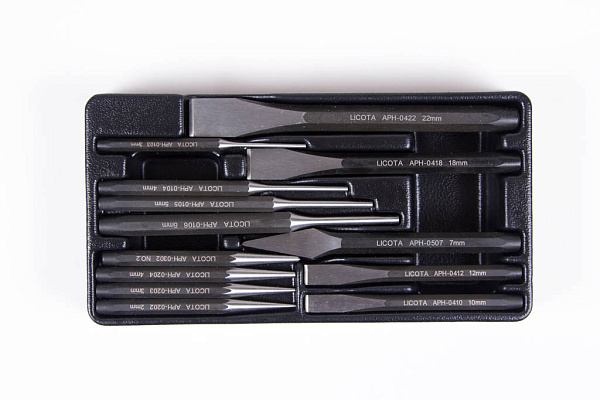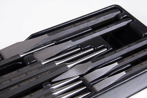 Набор ударно-режущего инструмента Licota ACK-274006. Комплект из 13 предметов в пластиковом ложементе с углублениями под инструмент.