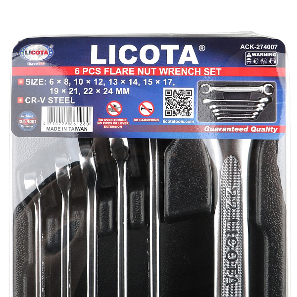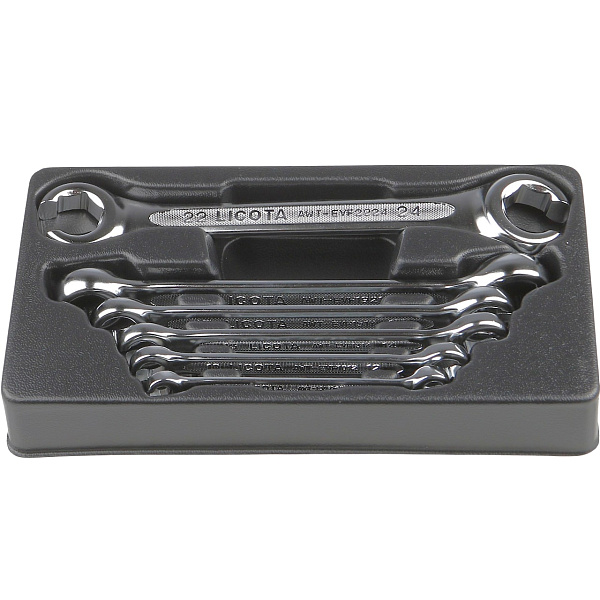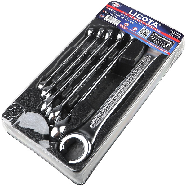 Набор разрезных ключей Licota ACK-274007 предназначен для применяется при обслуживании трубопроводов, где применение накидного ключа невозможно, а рожкового - нежелательно, в связи с высоким моментом затяжки и риском повредить грани деталей трубопроводов. В отличие от рожковых и накидных моделей, эти инструменты оснащены двухсторонним рабочим профилем в виде разрезанного кольца, также известном как «воронья лапа» из-за характерной формы.