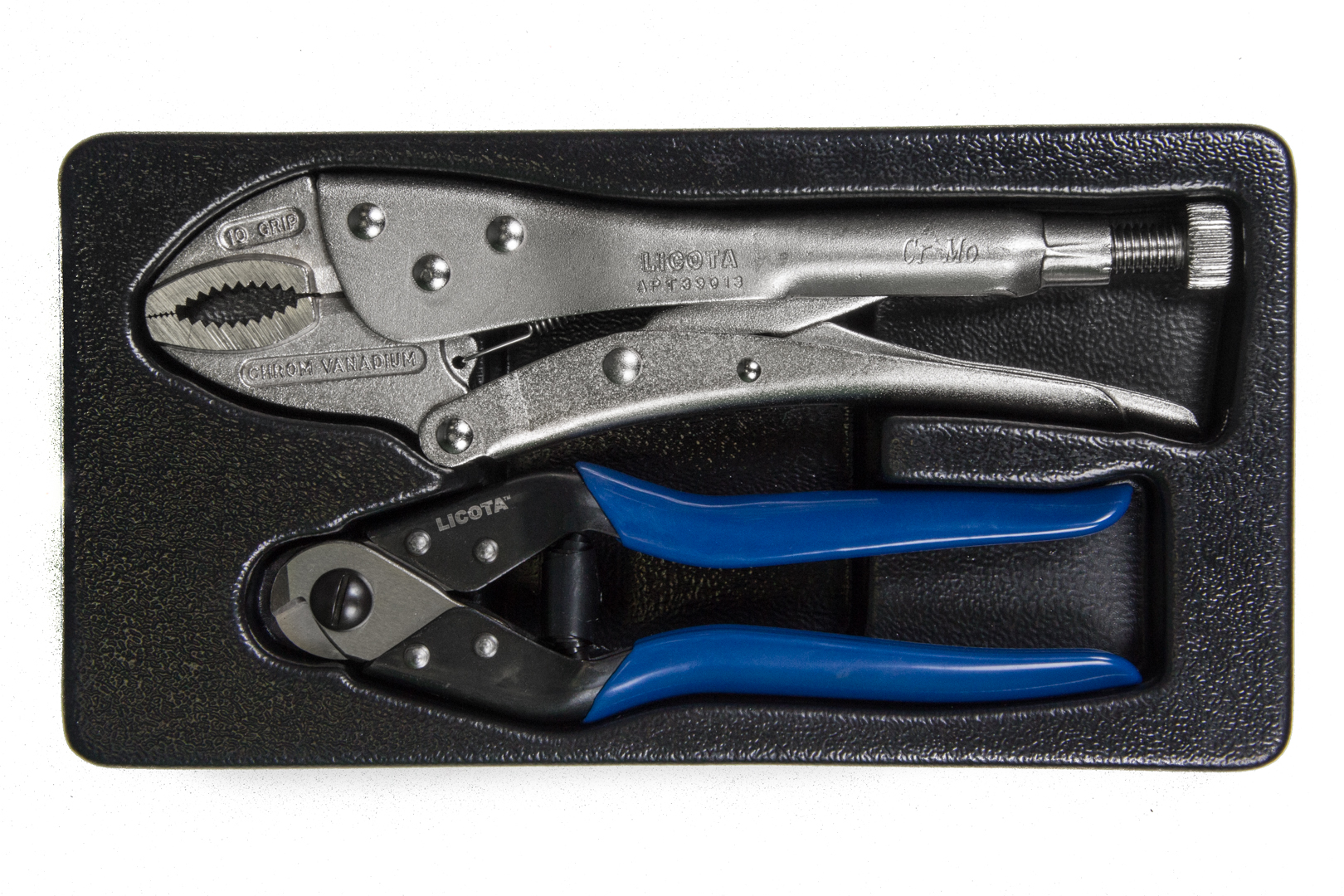 Набор: ручные тиски-струбцина и кабелерез Licota ACK-274010. Комплект шарнирно-губцевого инструмента из 2 предметов в пластиковом ложементе. Применяется в слесарно-монтажных, электромонтажных, сварочных.работах.