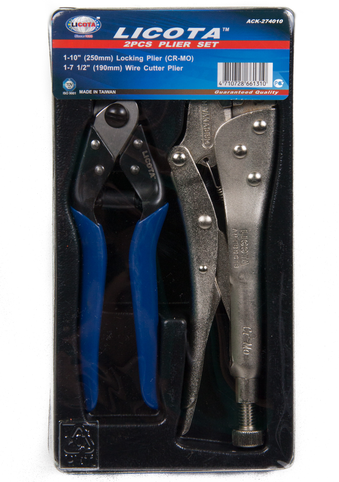 Набор: ручные тиски-струбцина и кабелерез Licota ACK-274010. Комплект шарнирно-губцевого инструмента из 2 предметов в пластиковом ложементе. Применяется в слесарно-монтажных, электромонтажных, сварочных.работах.