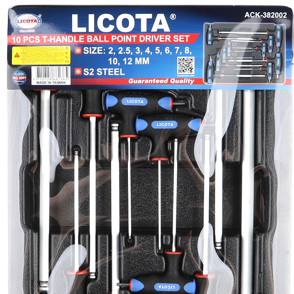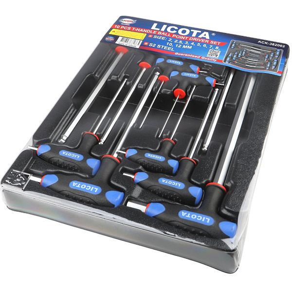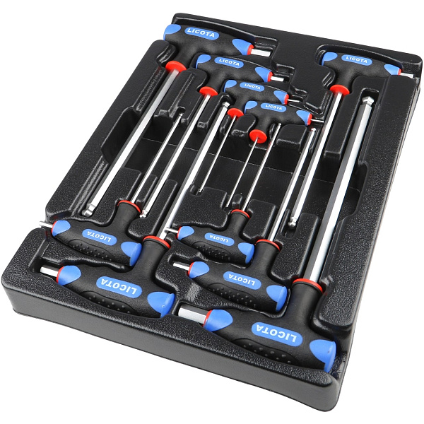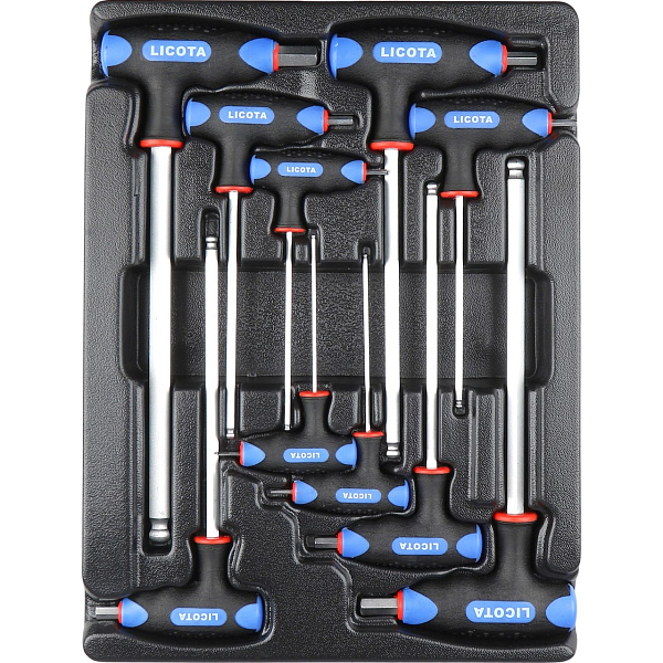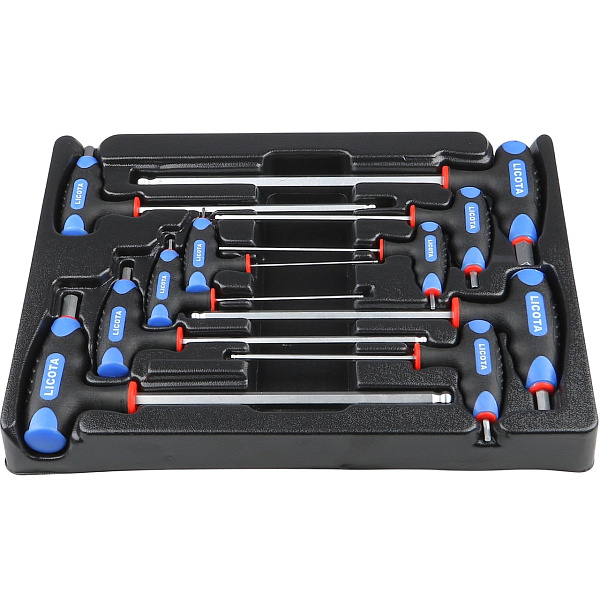 Набор ключей Т-образных шестигранных H2 - H12 с пластиковой рукояткой в ложементе, 10 пр., Licota, ACK-382002