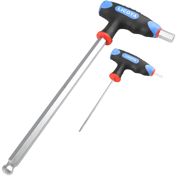 Набор ключей Т-образных шестигранных Licota ACK-382002. Комплект из 10 ключей, оснащенных двумя стержнями с профилем HEX (шестигранник) для монтажа/демонтажа резьбовых соединений с внутренним шестигранным профилем.