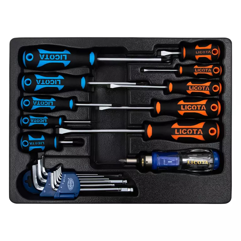 Набор отверток профессиональных, комплект угловых шестигранников и реверсивная отвертка с набором бит Licota ACK-382003, набор из 21 предмета в ложементе.