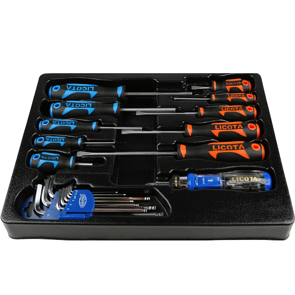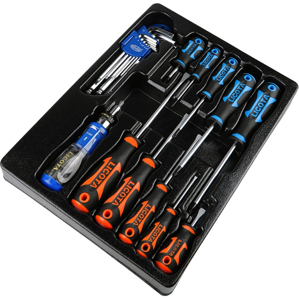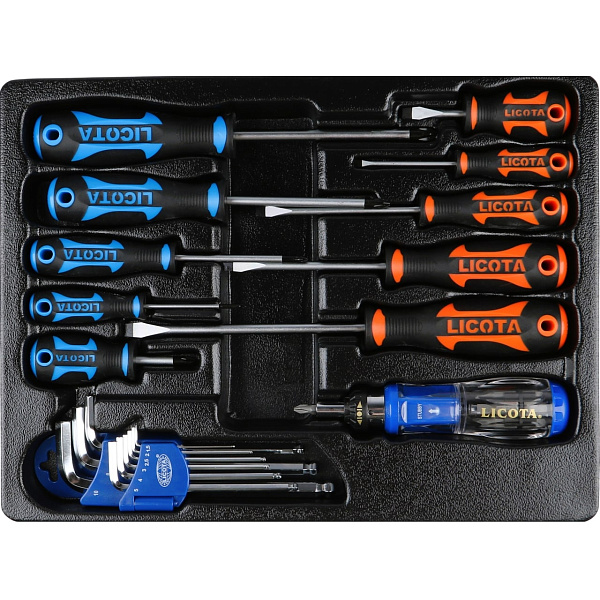 Набор отверток профессиональных, комплект угл. шестигранников и реверсивная отвертка с набором бит, в ложементе, Licota, ACK-382003