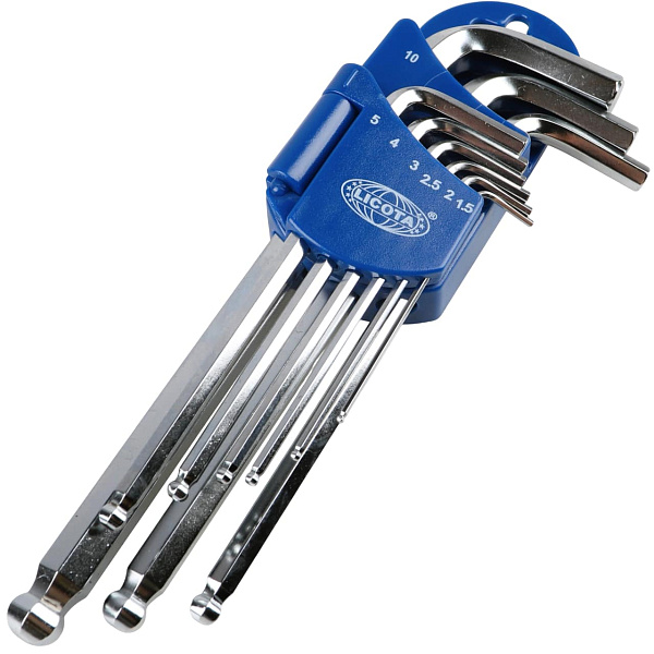 Набор шестигранников угловых длинных c шаром, 1.5, 2, 2.5, 3, 4, 5, 6, 8, 10 мм - 9