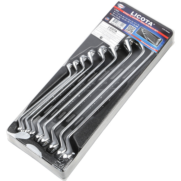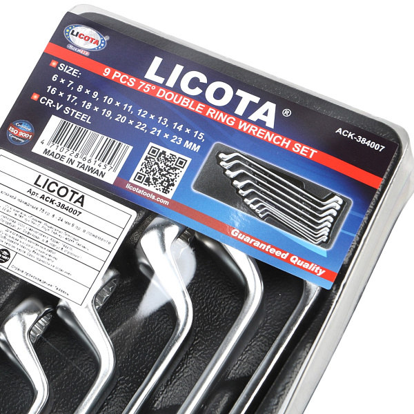 Набор накидных изогнутых ключей Licota ACK-384007 включает инструменты с двумя рабочими профилями, имеющими смежные размеры. Ключи позволяют быстро монтировать и демонтировать резьбовые соединения. Изогнутая под углом 75° рабочая часть ключа дает возможность работы с крепежом, расположенным в углублениях. Комплект из 9 предметов содержит полный размерный ряд без пропусков в диапазоне 6-23 мм.