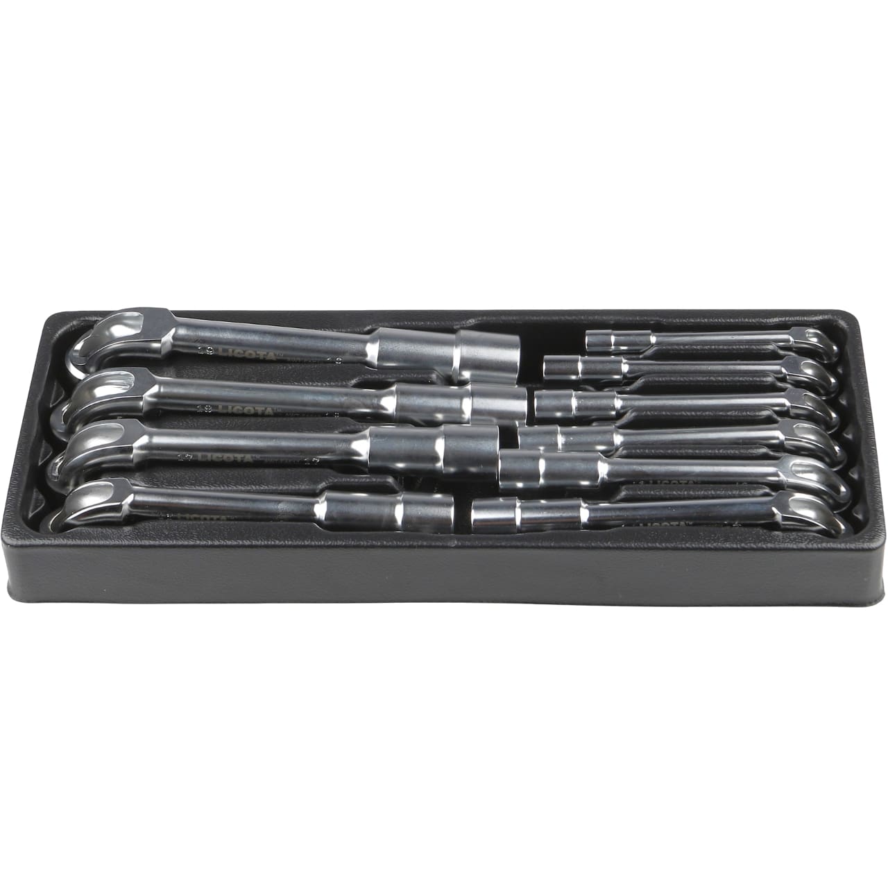 Торцевые ключи в наборе Licota ACK-384017 имеют Г-образную форму, а одна сторона ключа имеет сквозное (проходное) отверстие. Инструменты находят своё применение в слесарных мастерских, а также при домашнем обслуживании машин, поэтому пригодятся и в быту.