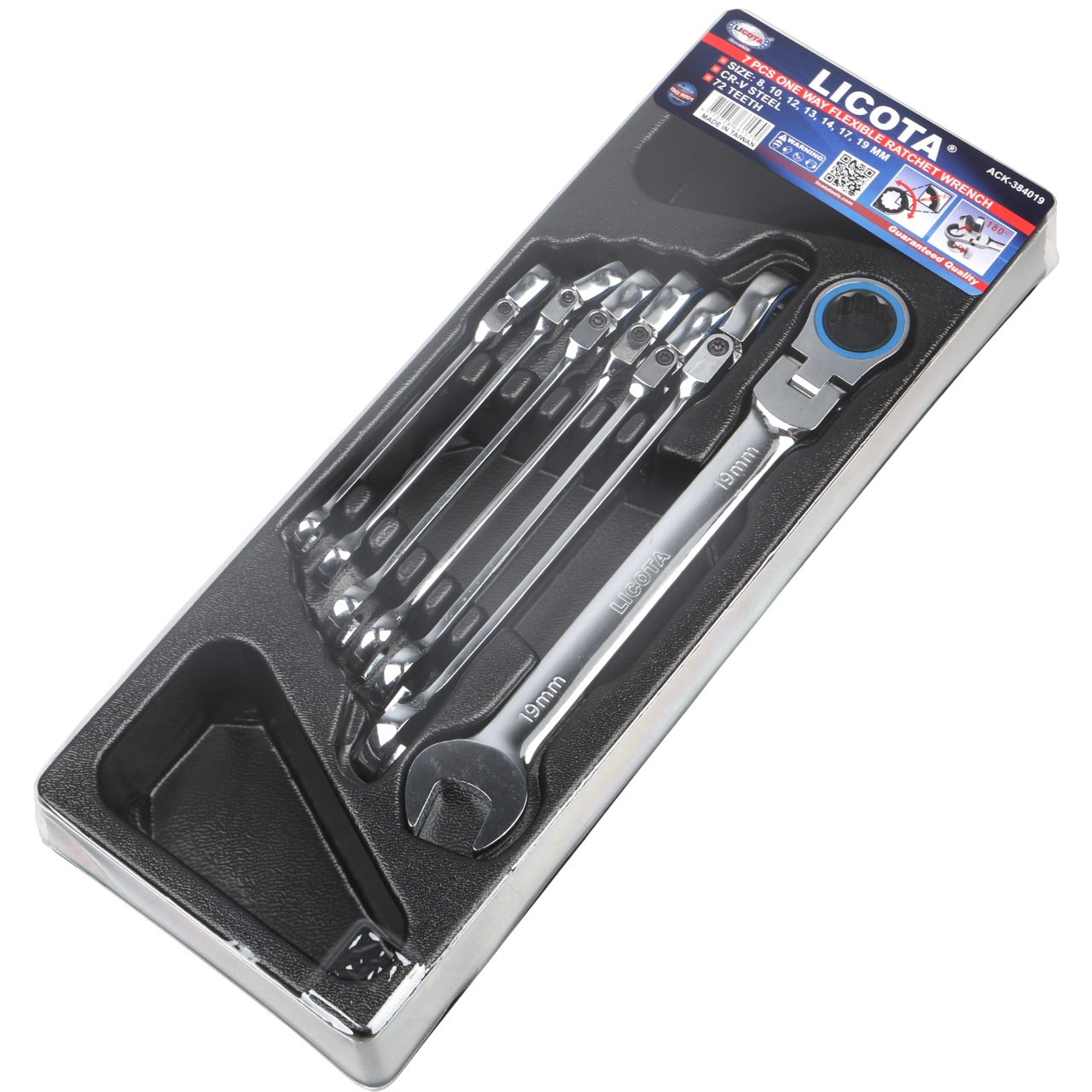 Набор ключей комбинированных трещоточных гибких 7 пр. 8- 19 мм, в ложементе