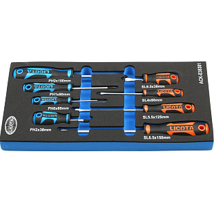 Набор комбинированных рожковых ключей в ложементе поможет рационально организовать хранение инструментов. Ложемент можно спрятать в ящик верстака или инструментальной тележки, он не занимает много места.