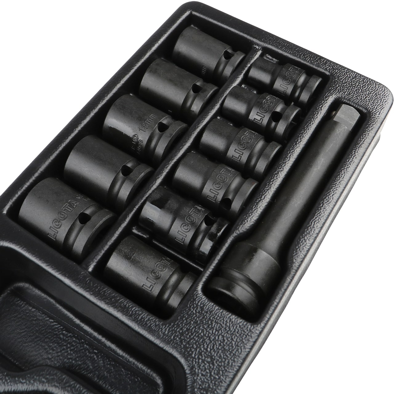 Набор ударных головок Licota ACK-384022 из хром-молибденовой стали предназначен для монтажа/демонтажа резьбового крепежа. Чаще всего используется при работе с ударным гайковертом.