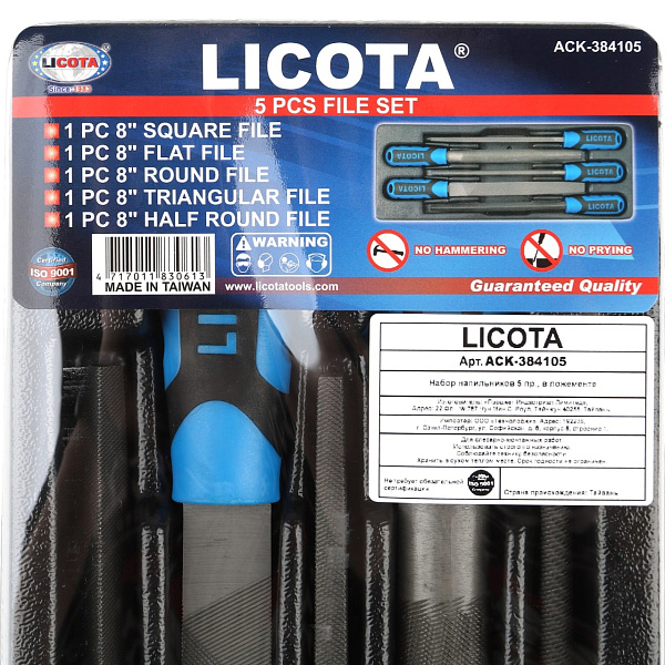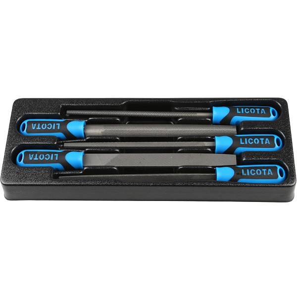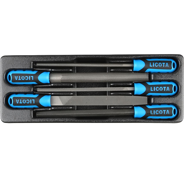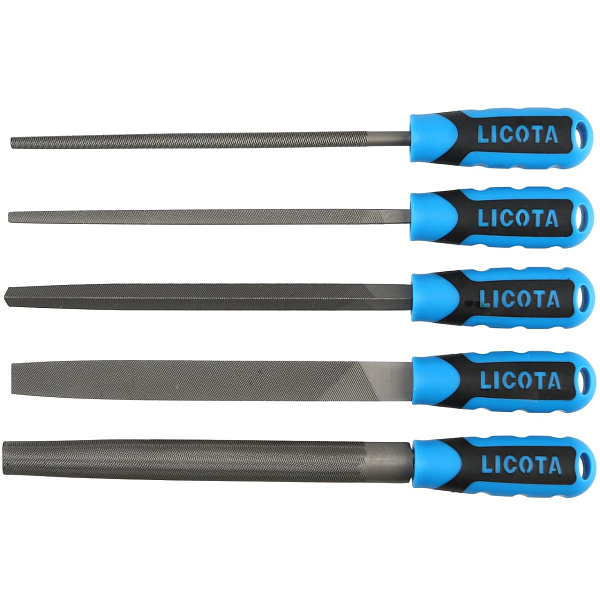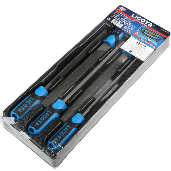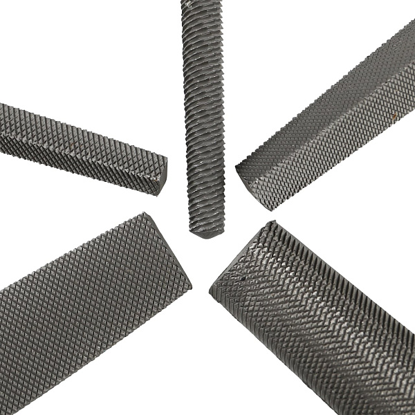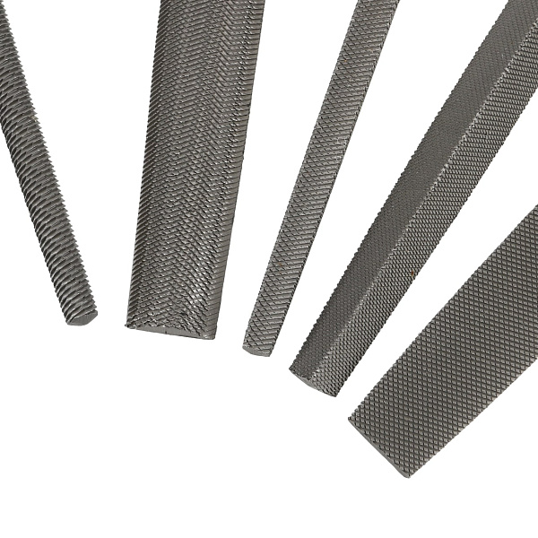 В набор входят плоский, круглый, полукруглый, трёхгранный и квадратный напильники. Инструменты позволяют обработать деталь любой формы.