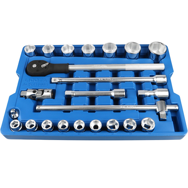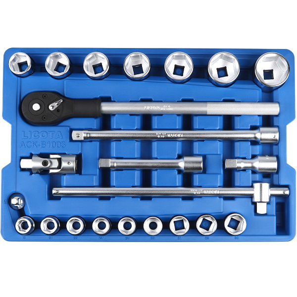 Набор торцевых головок с аксессуарами Licota ACK-B1003 из хром-ванадиевой стали предназначен для ручного монтажа/демонтажа резьбового крепежа.