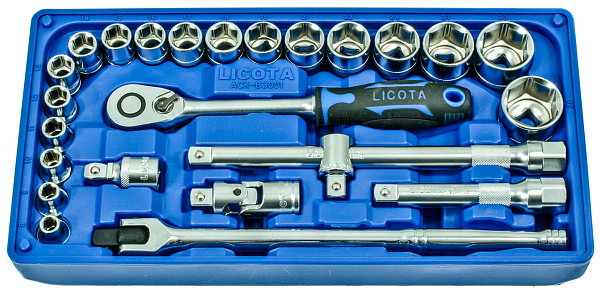 Набор торцевых головок 1/2" с аксессуарами, 25 пр., в ложементе-кейсе, Licota, ACK-B3001