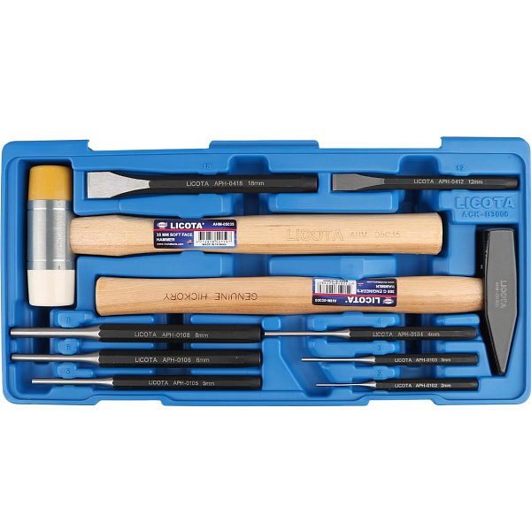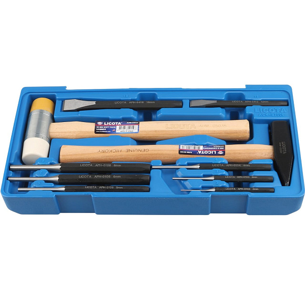 Набор ударно-режущих инструментов Licota ACK-B3006. Комплект вспомогательного инструмента для проведении слесарно-монтажных работ включает в себя молотки (со стальным и мягкими бойками), зубила и выколотки.