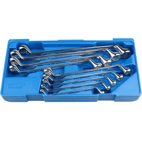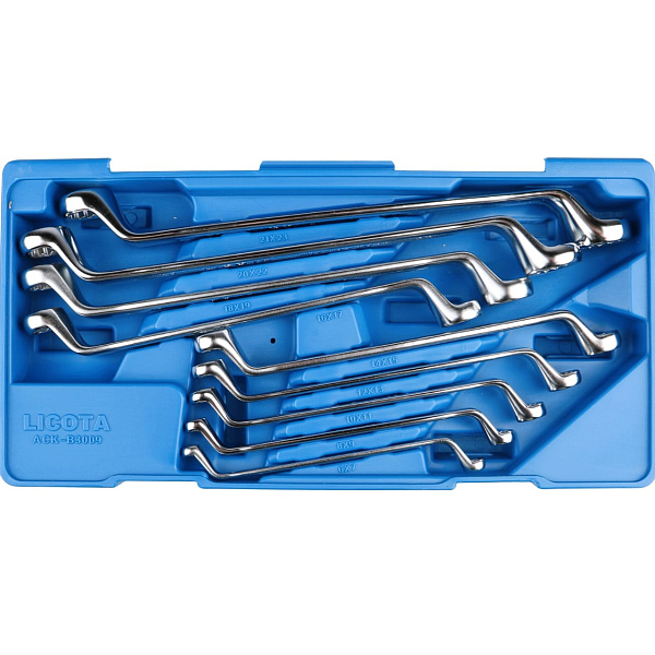 Набор накидных изогнутых ключей Licota ACK-B3009 включает инструменты с двумя рабочими профилями, имеющими смежные размеры. Ключи позволяют быстро монтировать и демонтировать резьбовые соединения. Изогнутая под углом 75° рабочая часть ключа дает возможность работы с крепежом, расположенным в углублениях. Комплект из 9 предметов содержит полный размерный ряд без пропусков в диапазоне 6-23 мм.