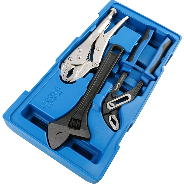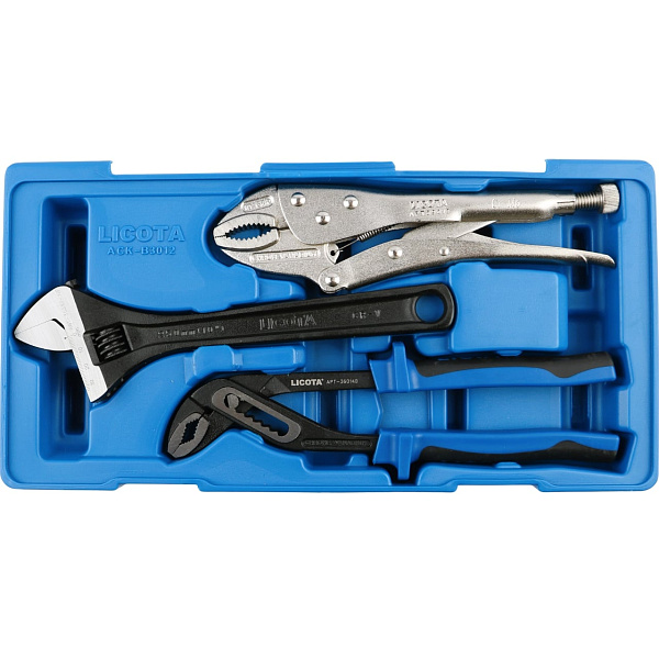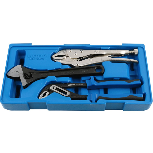 Набор: ручные тиски, переставные клещи, разводной ключ, в ложементе-кейсе, Licota, ACK-B3012