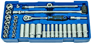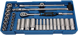 Комплект из 45 предметов поставляется в усиленном пластиковом кейсе-ложементе.