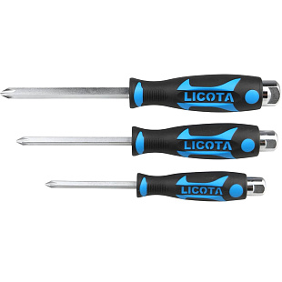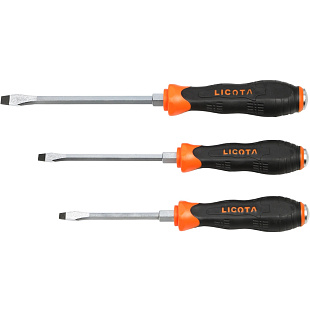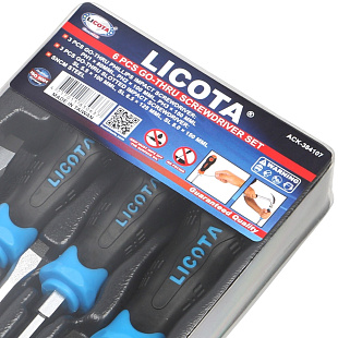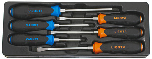 Набор цельнометаллических отверток Licota ACK-E38302 из 6 предметов в ложементе EVA. В комплект входят 3 отвертки с профилем SL (шлиц) и 3 отвертки с профилем PH (крест).