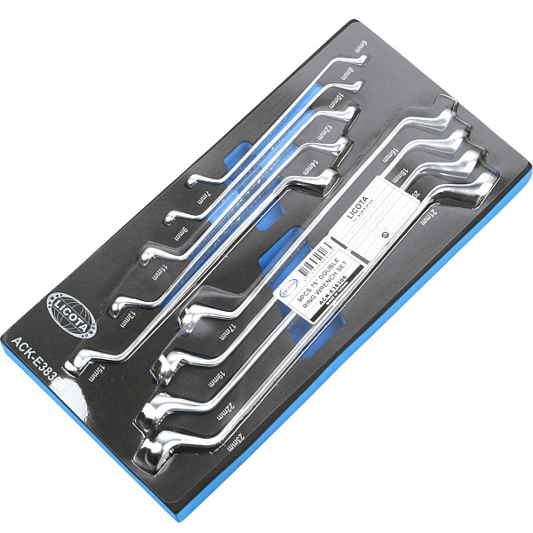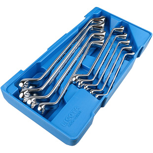 Набор накидных изогнутых ключей Licota ACK-E38306 включает инструменты с двумя рабочими профилями, имеющими смежные размеры. Ключи позволяют быстро монтировать и демонтировать резьбовые соединения. Рабочая часть, изогнутая под углом в 75°, облегчает применение ключей в ограниченном пространстве..
