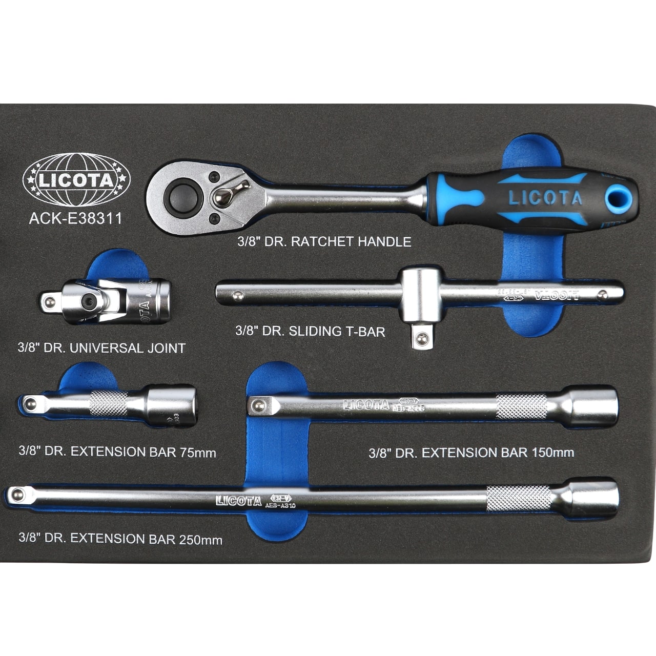 Набор торцевых головок с аксессуарами Licota ACK-E38311 из хром-ванадиевой стали предназначен для ручного монтажа/демонтажа резьбового крепежа. Содержит полный размерный ряд без пропусков в диапазоне 8-22 мм.