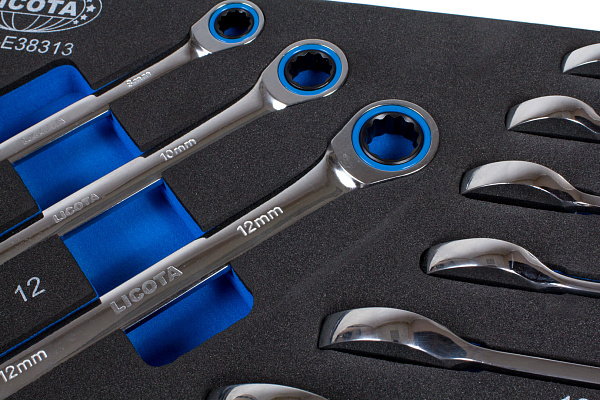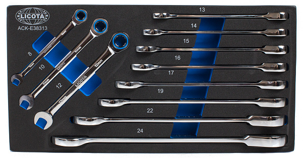 Набор ключей комбинированных трещоточных, 11 пр., 8 - 24 мм., в ложементе EVA, Licota, ACK-E38313