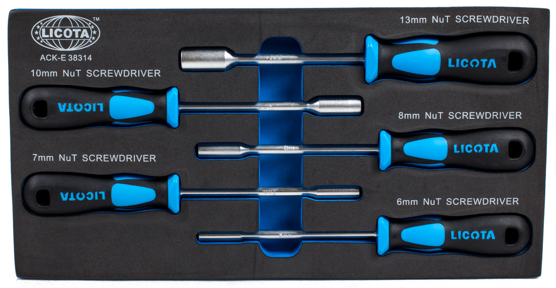 Набор отверток торцевых шестигранных Licota ACK-E38314 из 5 предметов в ложементе EVA. Длина штока - 125 мм.