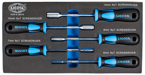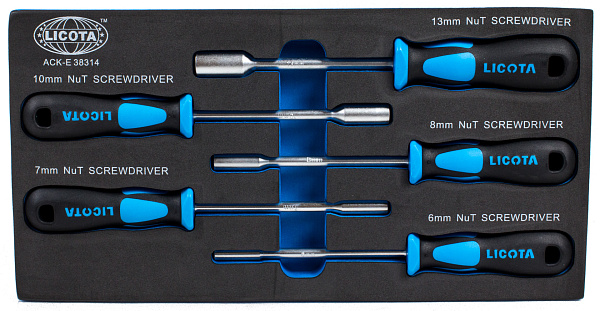 Набор отверток торцевых шестигранных, 5 пр., 6 - 13 мм., в ложементе EVA, Licota, ACK-E38314