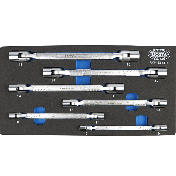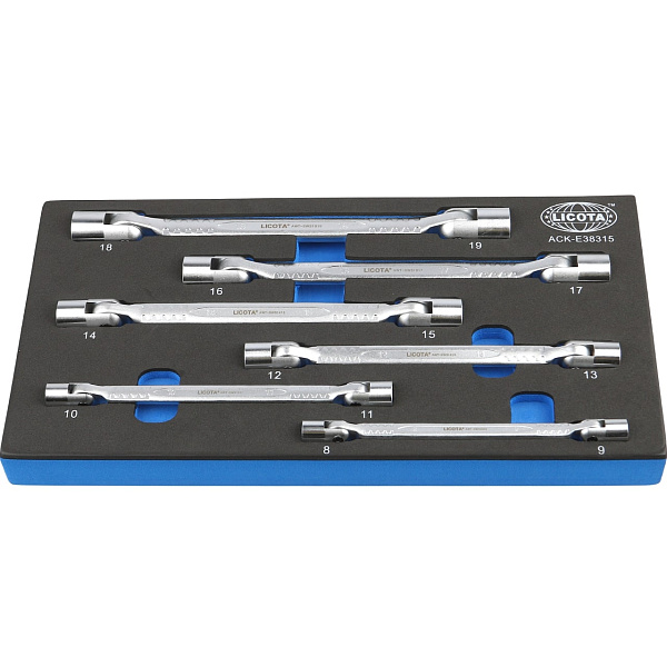 Набор ключей торцевых карданных 8 - 19 мм, 6 пр., ложемент EVA, Licota, ACK-E38315