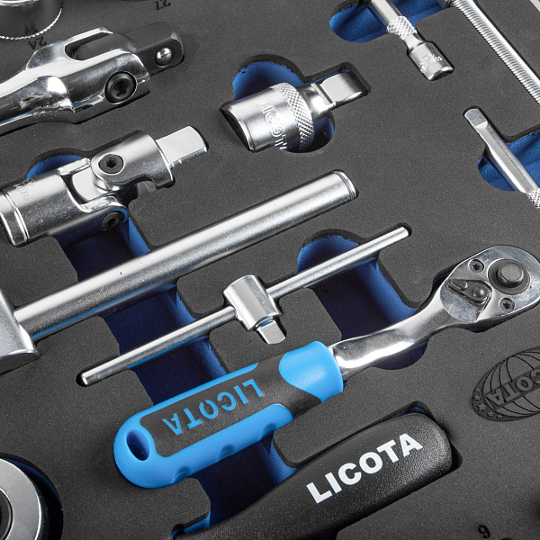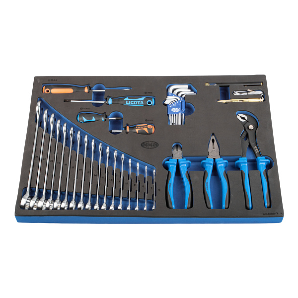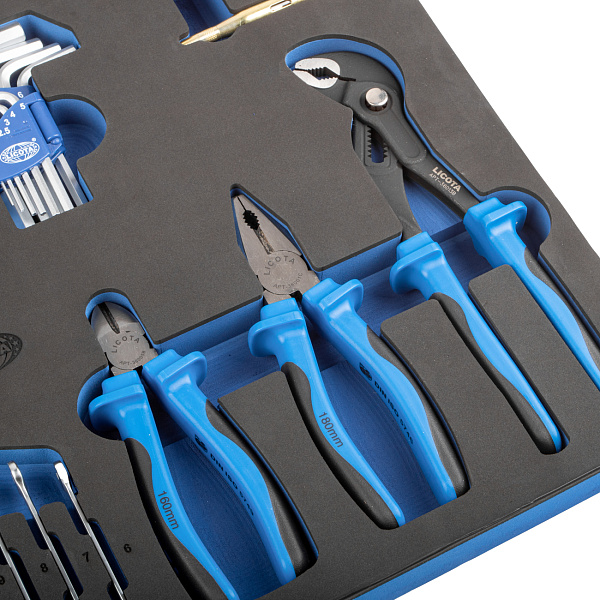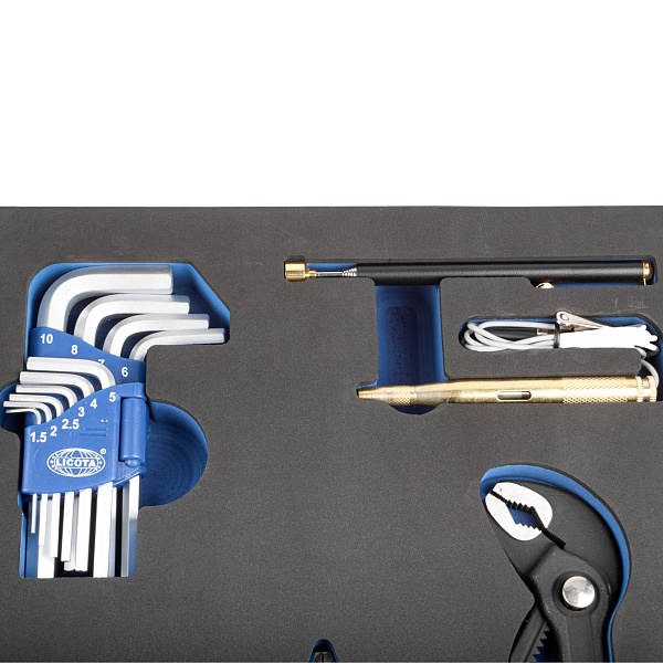 Ложемент EVA имеет высокую устойчивость к механическим воздействиям и влиянию ГСМ. Благодаря этому, он жестко фиксирует инструменты, быстро восстанавливает форму при деформации, не разлагается под действием масел и других веществ.