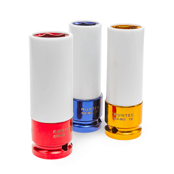 Тонкостенные головки для литых дисков с защитным кожухом и внутренней вставкой, предотвращающими повреждение колесных дисков и крепежа.