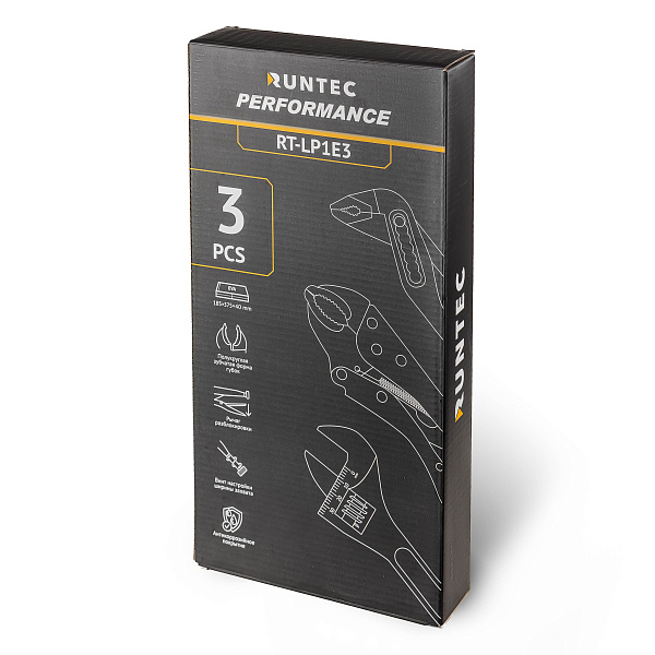 Набор ручных инструментов RUNTEC клещи зажимные, клещи переставные, ключ разводной в ложементе EVA, 3 предмета
