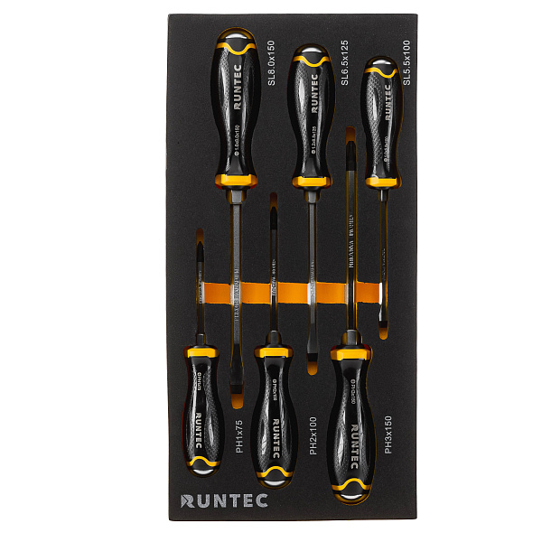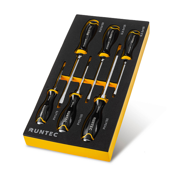 Набор усиленных отверток RUNTEC CrV со сквозным стержнем в ложементе EVA, 6 предметов