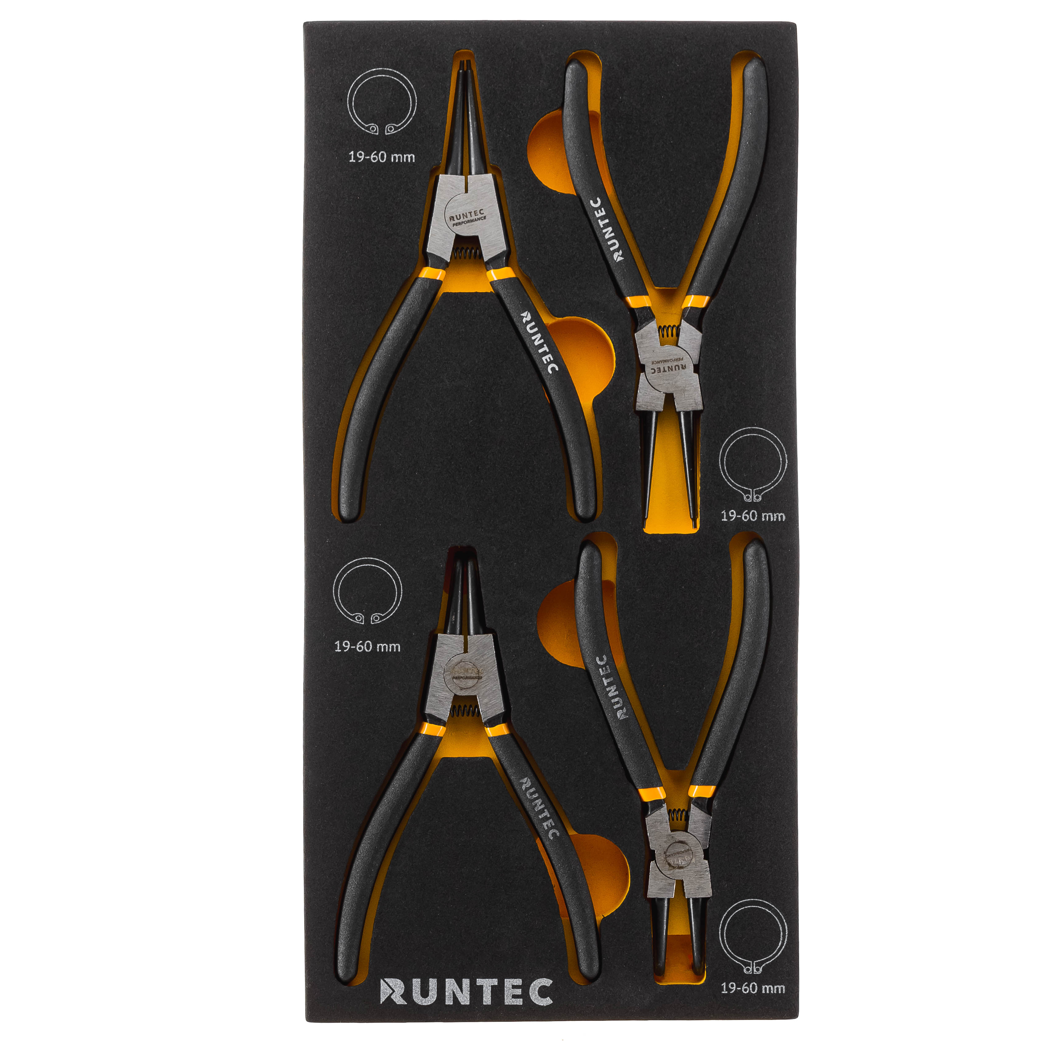 Набор съемников стопорных колец RUNTEC CrV 180 мм в ложементе EVA, 4 предмета