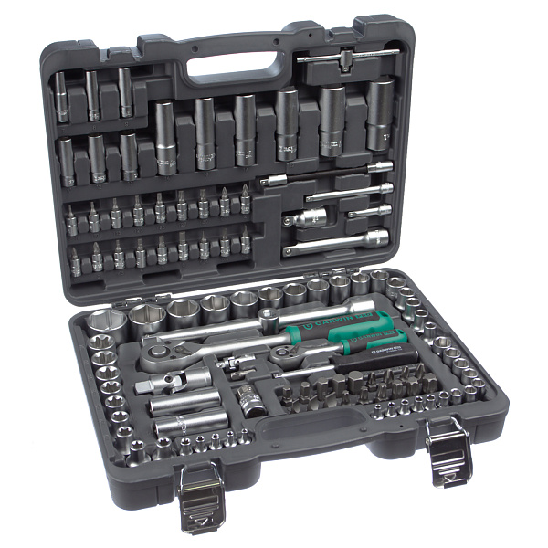 Трещотки, воротки и головки изготовлены из хром-ванадиевой стали и устойчивы к механическим нагрузкам. При изготовлении бит и вставок используется сталь S2, что придает им высокую твердость, ударную вязкость и предохраняет от коррозии.