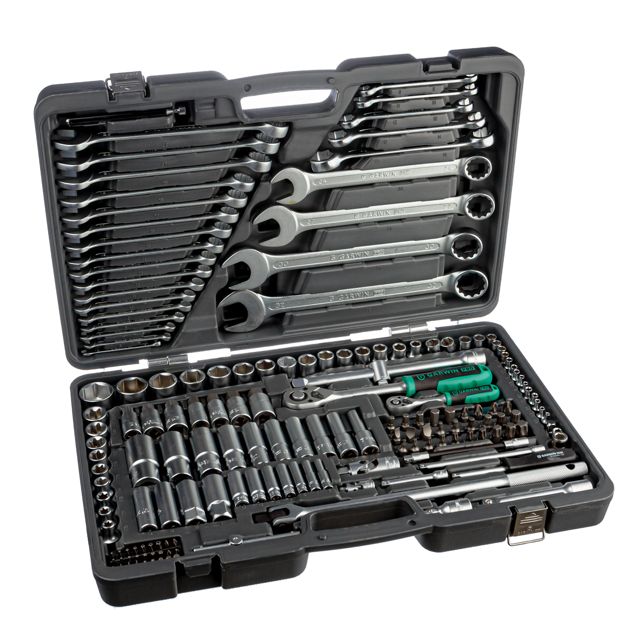 В составе набора комбинированные ключи 6-32 мм и 5 разрезных ключей для работы с гидравлическими системами.