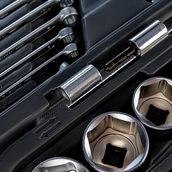 В наборе торцевые головки E-профиля и свечные головки всех размеров, широкий размерный ряд глубоких головок ¼” и ½”, головки с шестигранными вставками и spline больших размеров.