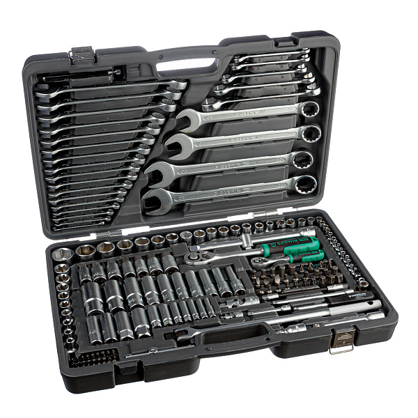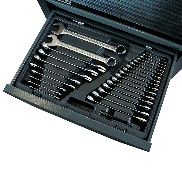 В составе набора комбинированные ключи 6-32 мм и 5 разрезных ключей для работы с гидравлическими системами.